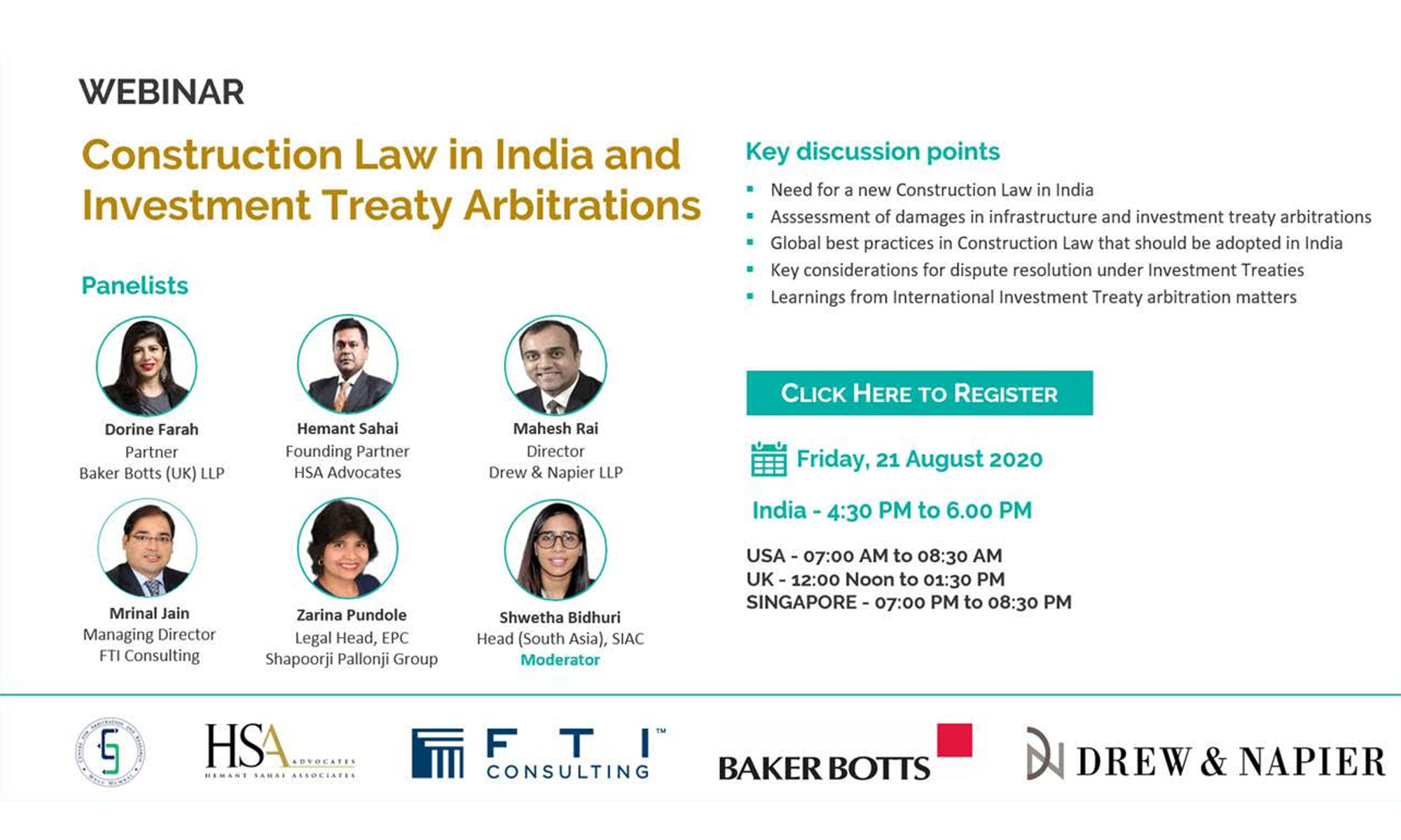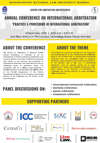 Co-organizers/Supporting Organizations: Society of Construction Law (India), CIArb,Indian Arbitration Forum, SIAC, MCIA and Bar and Bench
