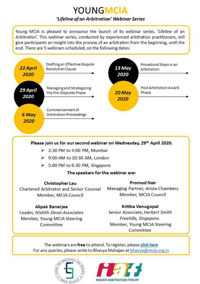 Lifeline of an Arbitration - A Webinar Series Organized by MCIA